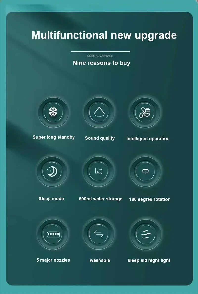 【3-in-1 Portable Mini Fan – Cooler, Humidifier & LED Light】 Stay Cool. Stay Comfortable. Anywhere. Introducing the Portable Mini Fan 3-in-1 Cooler, designed to make hot summer days a breeze. Whether you’re working at your desk, resting in your bedroom, or relaxing in your living room, this compact fan delivers powerful airflow, soothing humidity, and ambient LED lighting in a sleek, lightweight design. Available in classic Black, White, Blue, and Green, this fan complements any home décor while providing quiet, efficient, and personalized cooling comfort. Key Features: 1. 3-in-1 Functionality - Fan + Air Cooler + Humidifier: Combines air circulation, cooling mist, and moisture to relieve dryness and heat. - Perfect for dry climates or air-conditioned rooms to prevent dry skin, throat, or eyes. 2. Compact & Portable Design - Small enough to fit on a desk, nightstand, or countertop. - Easy to carry and move—ideal for home, office, dorms, camping, or travel. 3. Quiet Operation - Low-noise motor ensures peaceful rest or undisturbed work. - Designed for bedrooms, nurseries, and quiet workspaces. 4. USB Powered - Connects to any USB port—power bank, laptop, car charger, or adapter. - No batteries required. Energy-efficient and eco-friendly. 5. Soothing LED Light - Built-in LED light function creates a calming atmosphere. - Great for night-time use or as ambient lighting in your bedroom. 6. Adjustable Wind Speeds - Multiple fan speed modes let you choose your level of comfort. - From gentle breeze to powerful air blast, all at your control. 7. Large Water Tank for Misting - Easy-to-fill tank supports long hours of mist spray. - Keeps the air moist and refreshing without over-saturating. Specifications: - Color Options: Black, White, Blue, Green - Function: Fan + Cooler + Humidifier - Material: ABS + Electronic Components - Water Tank Capacity: Up to 300ml - Power Source: USB Powered (DC 5V) - Speeds: 3-Speed Wind Mode - LED Light: Yes (Soft Glow Lighting) - Application: Indoor Use (Bedroom, Desk, Living Room, Office) Ideal For: - Summer bedrooms that need extra cooling - Dorm room desks where space is limited - Office workstations for personal comfort - RVs and camping with portable power banks - Gifts for kids, teens, and adults - Nightstand for gentle air + light combo Easy To Use: 1. Add Water – Open the lid and pour water into the tank. 2. Plug In via USB – Use any USB power source. 3. Turn On – Select fan speed and LED mode. 4. Enjoy – Cool, hydrated air in minutes. Why Choose This Portable Mini Fan? - Energy-Saving: Consumes less power than traditional fans or AC units. - Low Maintenance: No complicated filters or setup. - Safe & Durable: Built with child-safe blades and non-slip base. - Colorful Options: Choose a fan that matches your room or mood. What You Get: - 1 × 3-in-1 Portable Mini Fan - 1 × USB Cable - 1 × Instruction Manual - Ready to use out of the box. No batteries or tools needed. SEO Keywords (Integrated Naturally): Portable Mini Fan, USB Desk Fan, Cooler with Humidifier, 3-in-1 Air Conditioner Fan, Bedroom Fan Quiet, Summer Personal Cooling Fan, Mini LED Air Fan, Desk Cooling Fans for Office, Home Humidifier Fan Combo, USB Rechargeable Cooling Device, Colorful Table Fan, Personal Air Cooler USB Powered, Living Room Cooling Fan, Air Conditioner Fan for Small Rooms, Mini USB Humidifier and Fan, Black White Blue Green Mini Fans Final Thoughts Don’t let summer heat interrupt your productivity, relaxation, or sleep. The Black White Blue Green Portable Mini Fan 3-in-1 Cooler is the compact solution for personal cooling, humidification, and lighting—all in one stylish, USB-powered device. Order now to experience comfort wherever you are. Introducing the Black White Blue Green Portable Mini Fan 3 in 1 Cooler Home House LED USB Desk Bedroom Indoor Air Conditioner Humidifier Desk Fans Summer Living Room. This cutting-edge personal cooling solution combines three essential functions—fan, air cooler, and humidifier—into one compact and portable design. Whether you're working, sleeping, or relaxing in your living room, this mini fan ensures a comfortable environment throughout the hot summer days. Engineered for maximum convenience, the USB-powered unit features multiple speed modes, adjustable airflow direction, and LED lighting for nighttime use. Its sleek, colorful design makes it suitable for any décor while ensuring practical functionality. With whisper-quiet operation and energy-efficient performance, this mini air conditioner humidifier is the perfect companion for your desk, bedside, or travel bag. The integrated water tank supports long hours of mist cooling, improving humidity and alleviating dryness in the air—ideal for both comfort and health. Portable Mini Fan, USB Desk Fan, 3 in 1 Air Conditioner, LED Humidifier, Bedroom Cooling Fan, Indoor Fan for Summer, Office Table Fan, Personal Humidifier Cooler, Air Mist Spray, Small Room Cooling Device, Portable Air Conditioner, Mini USB Fan, Adjustable Speed Fan, Living Room Humidifier, Quiet Operation USB Fan, Compact Cooling Solution, Water Tank Cooler, Multifunction Mini Fan, Travel Desk Fan, Summer Home Appliance.