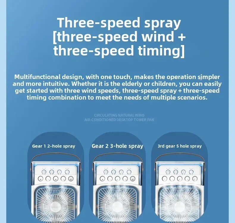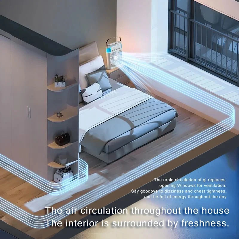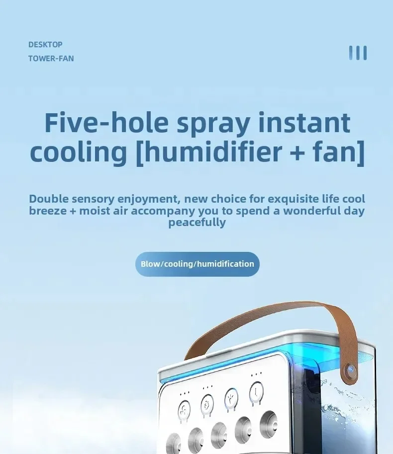 Fan + Air Cooler + Humidifier: Combines air circulation, cooling mist, and moisture to relieve dryness and heat.
