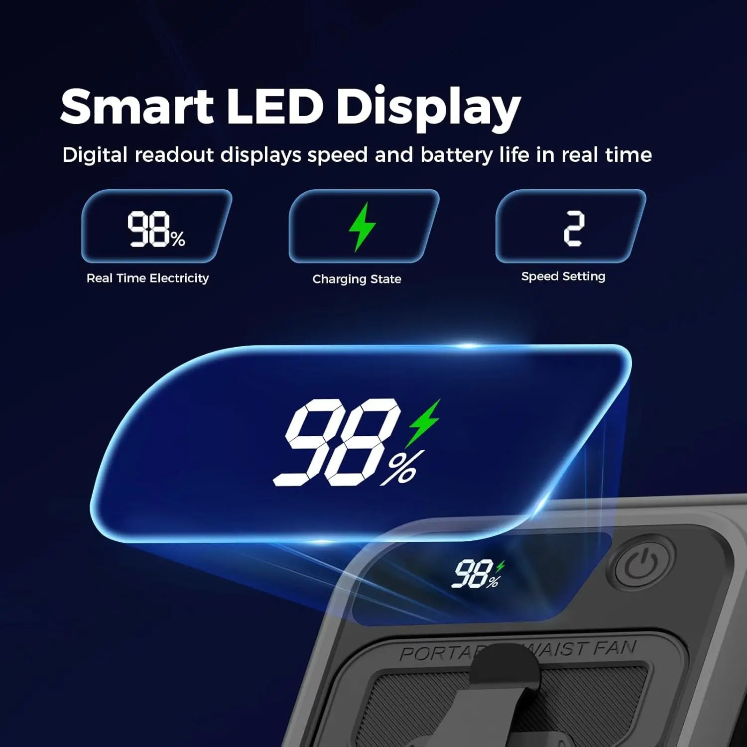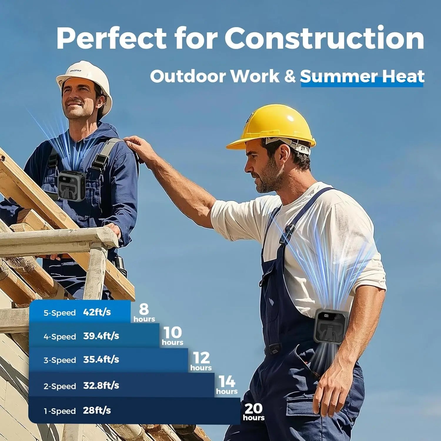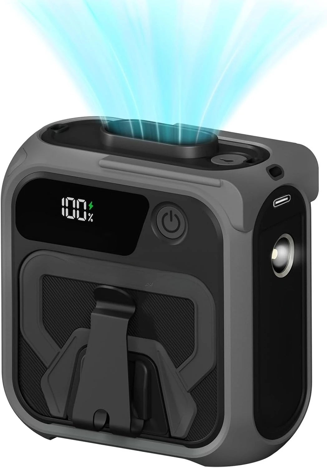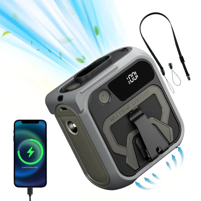 - [2025 Upgraded Portable Waist Fan]Experience ultimate cooling versatility with our 6th generation clip on fan, engineered for durability and performance. This portable waist fan features a stronger motor, anti-slip silicone sleeves, and an upgraded manganese steel clip for secure attachment to belts, shirts, or gear. Perfect for outdoor work, construction sites, or adventures, it’s designed to stay put even in high-movement scenarios.